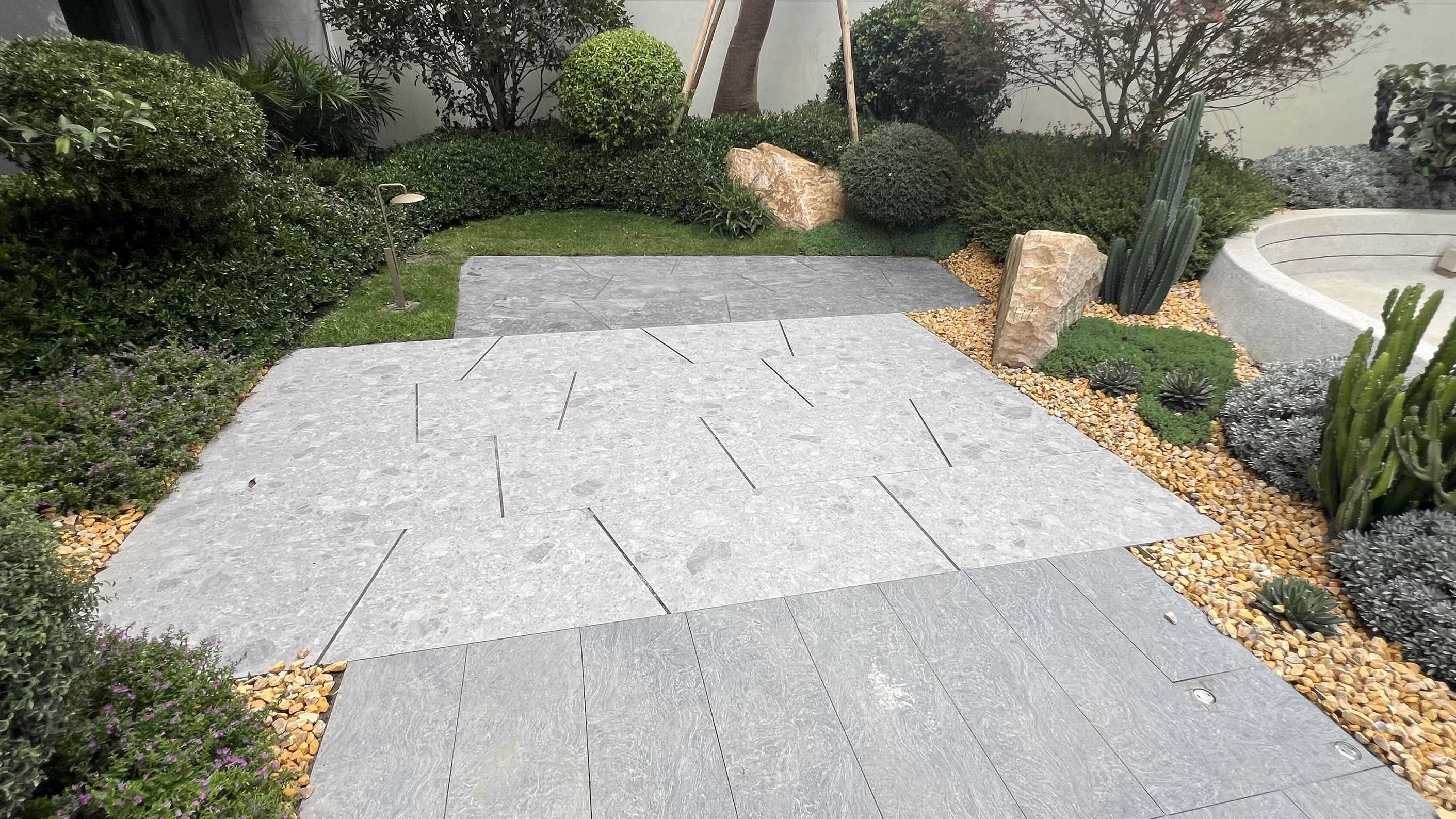 別墅,庭院的鋪裝材料,已經越來越多的從石材轉變為石英磚。